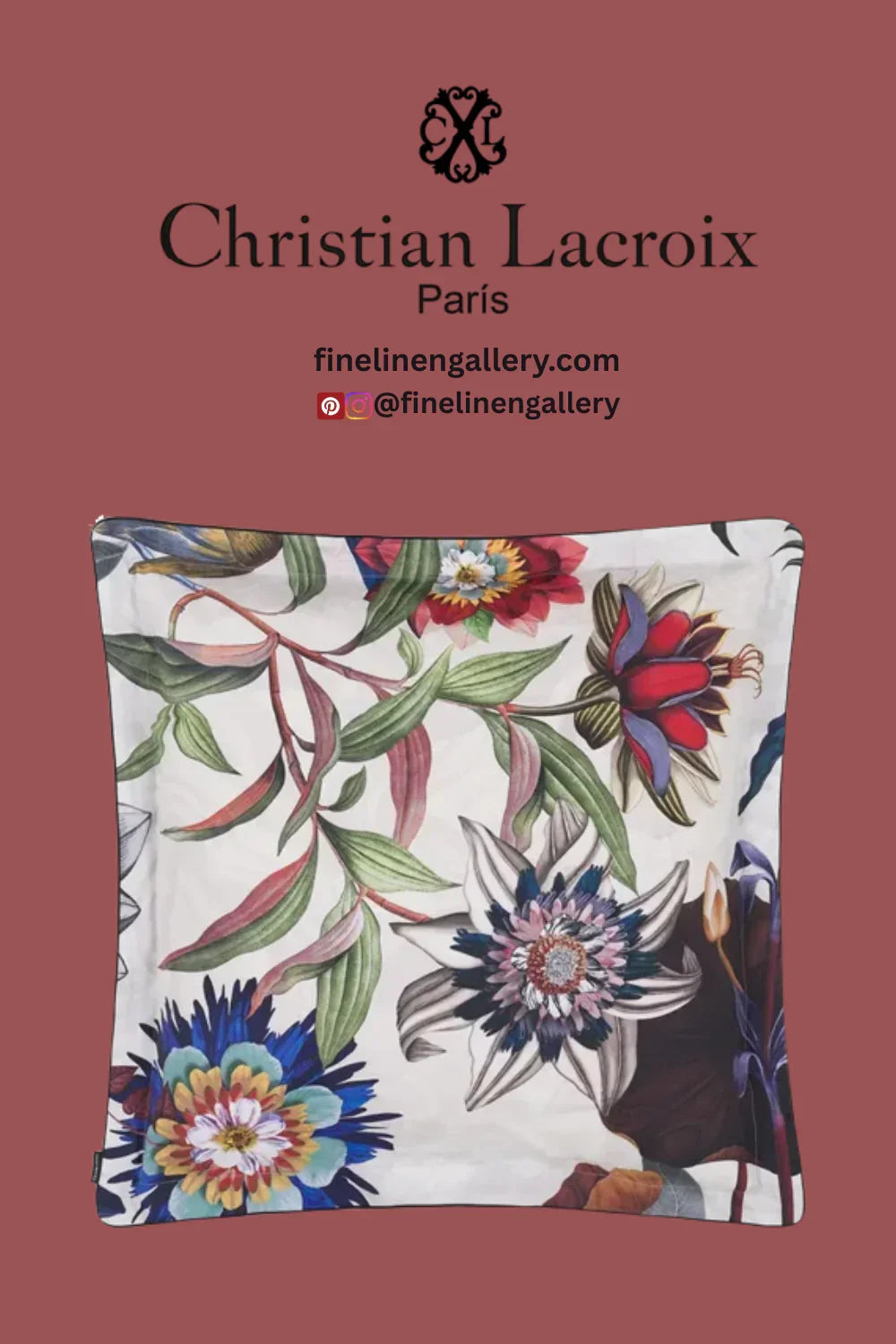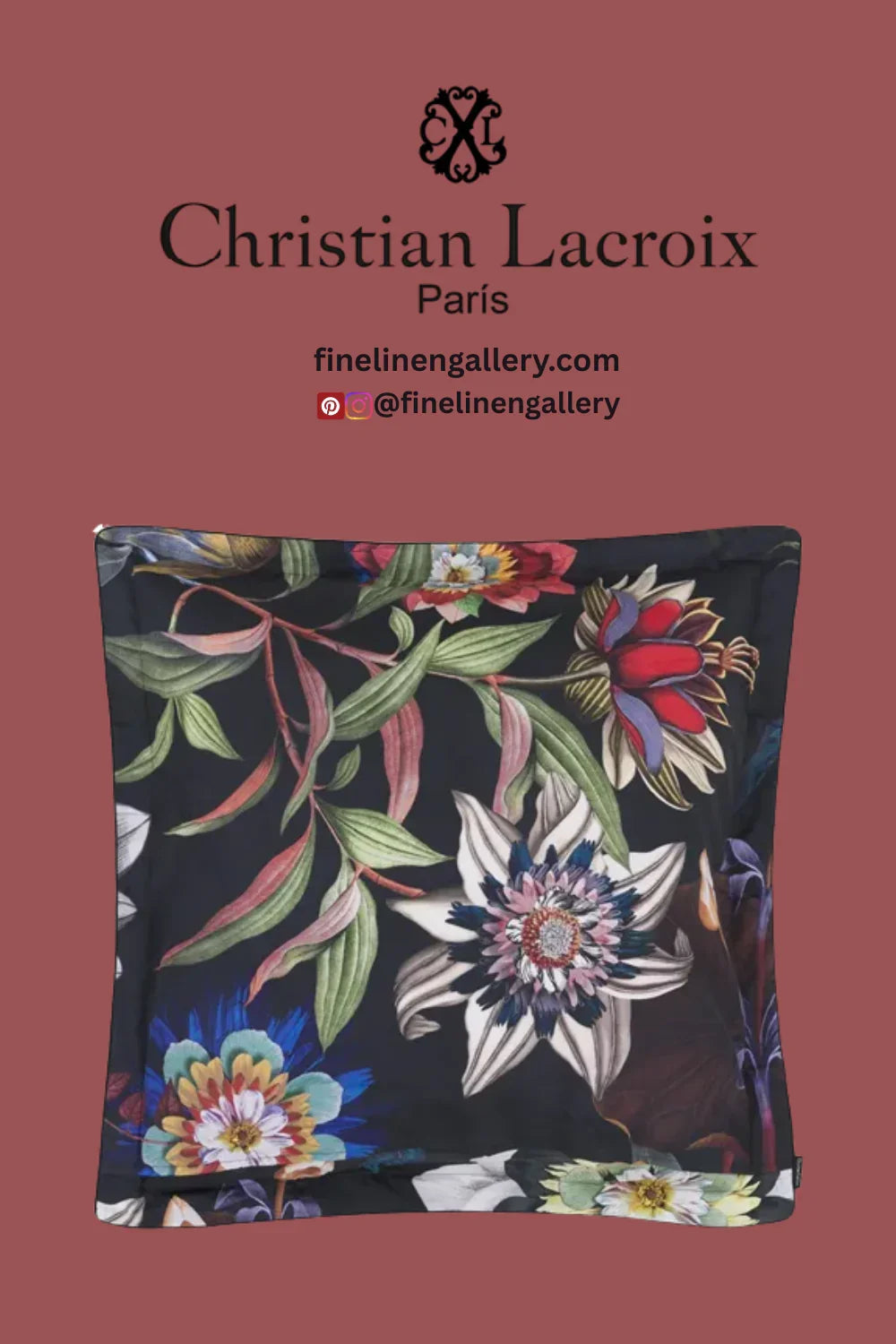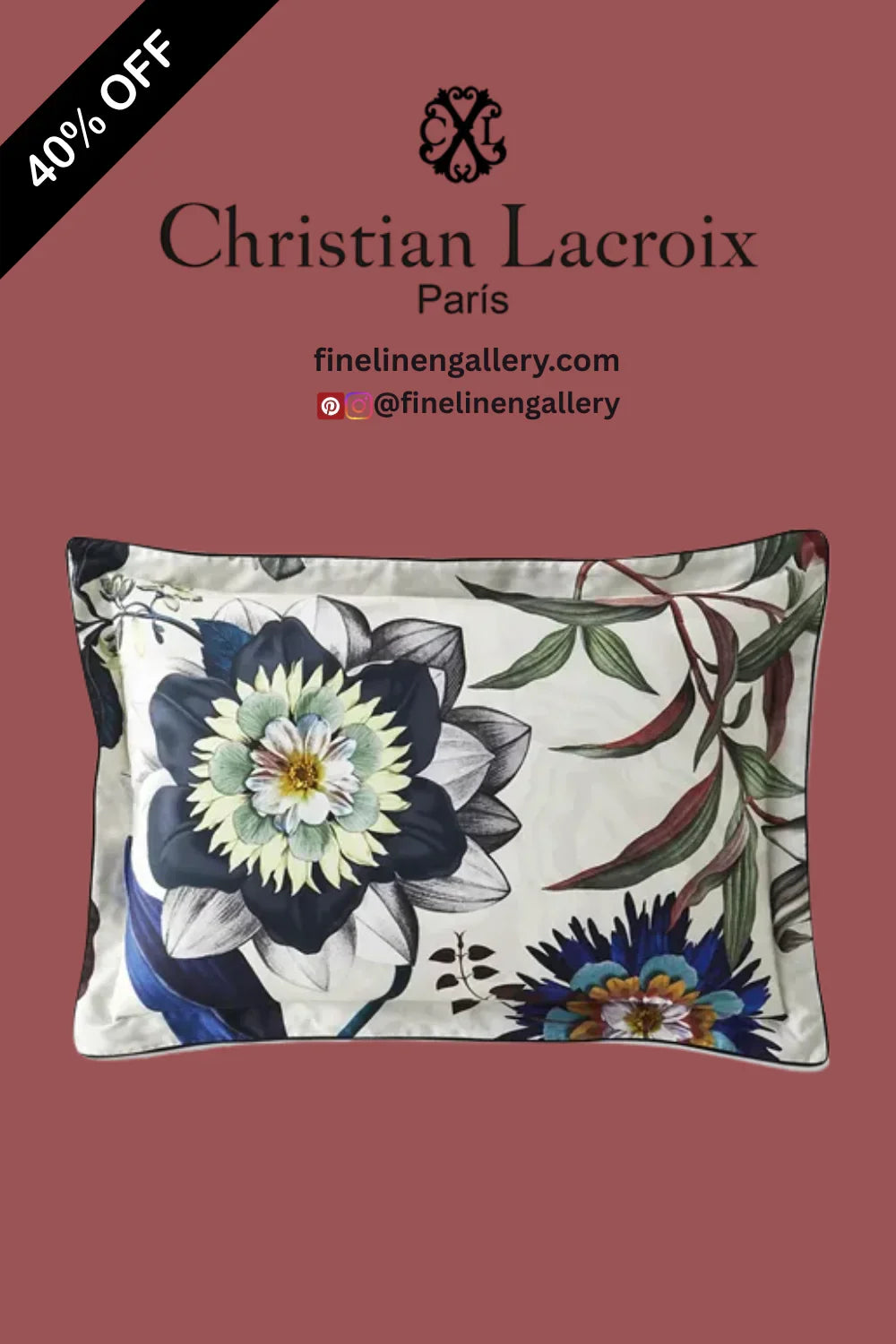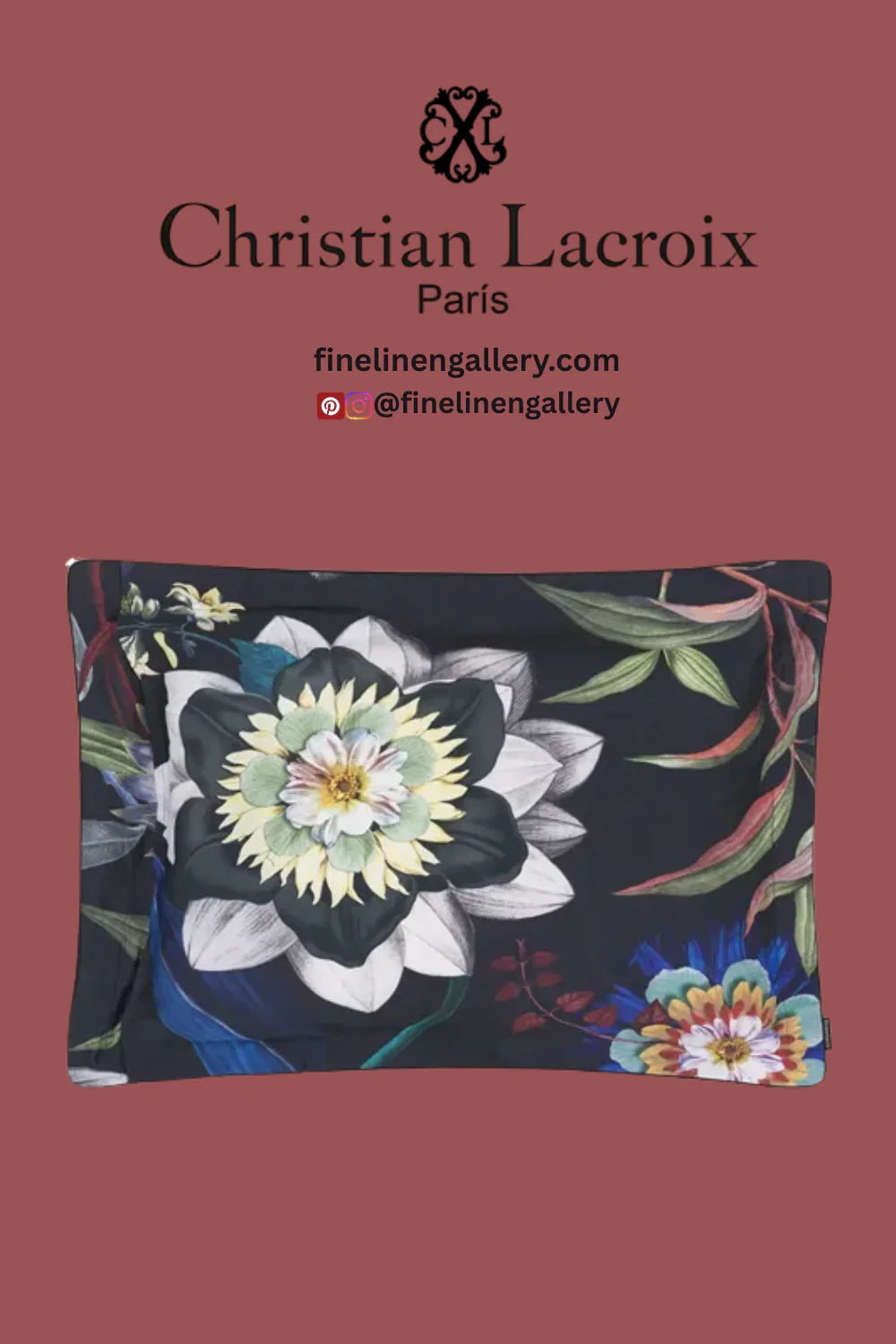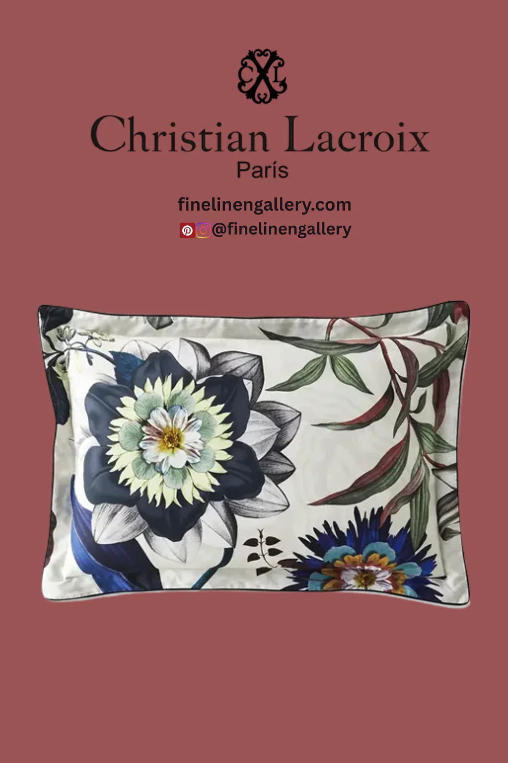 Graphic flowers and foliage intertwine in dramatic scale in this striking floral bedding design by Christian Lacroix. Digitally printed onto luxurious cotton sateen and fully reversible with light and dark grounds. Completed with statement pillowcases and packaged in eco reusable fabric pouches with button closure.