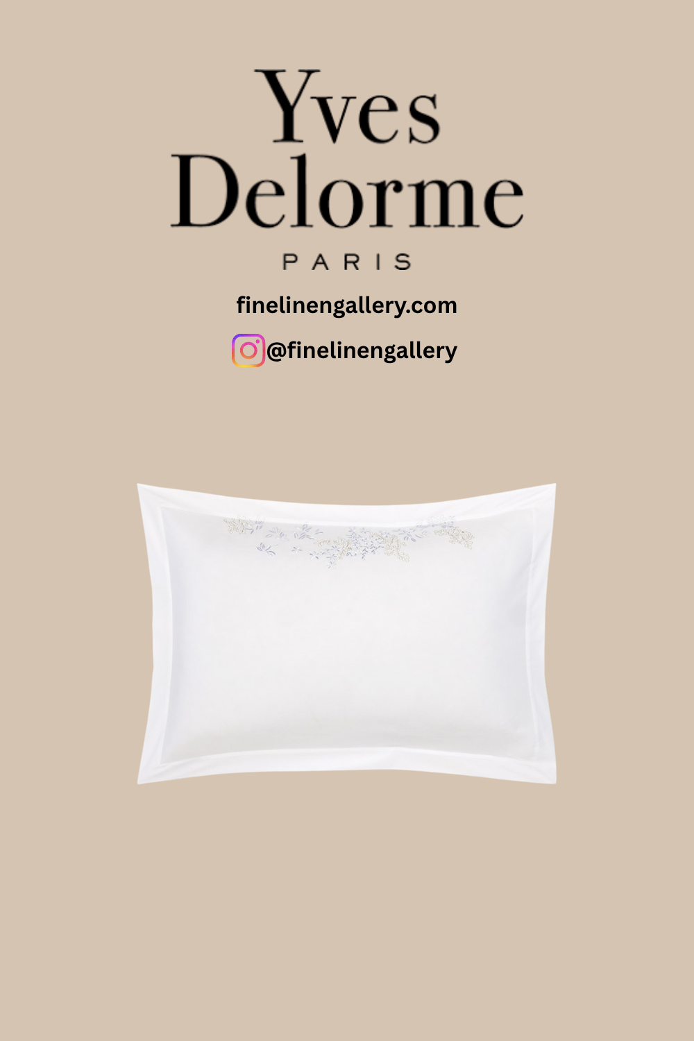 Crafted from Pima cotton sateen, 500 thread count, using 100% extra-long staple combed cotton, this bed linen set stands out for the natural sheen of its fabric, the precision of its placed embroidery, and the finesse of its couture-inspired finishing.