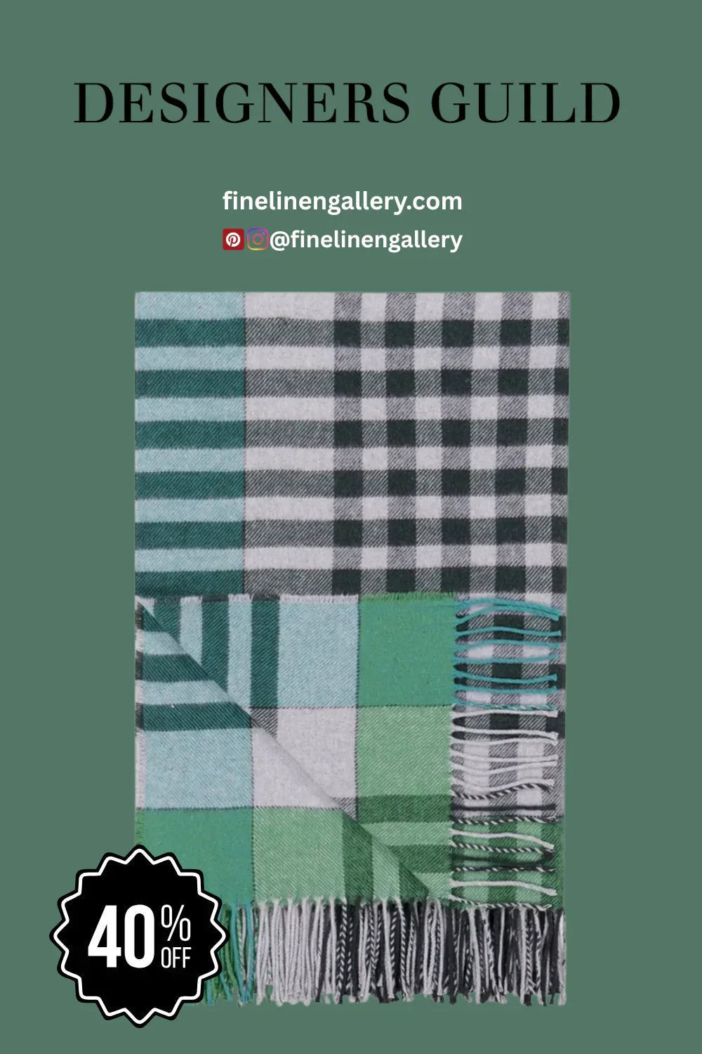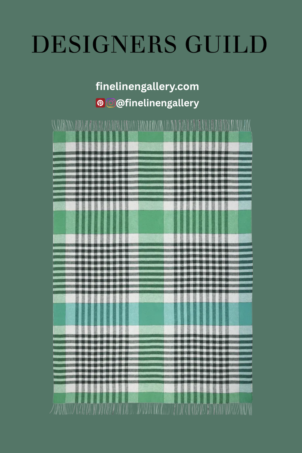 A classic check is reinvented for this stylish woven interior throw. In tones of emerald and aqua with a smart charcoal overcheck. Woven with a luxurious soft cotton and wool blended yarn and finished with fringed edges.