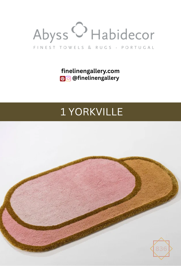 The Abyss & Habidecor Boudoir bath rug is a two-tone design with a contrasting border in a unique shape. The overall outside dimensions are 27 x 47". At 2,200 grams per square metre, this rug has a wonderful feel.
