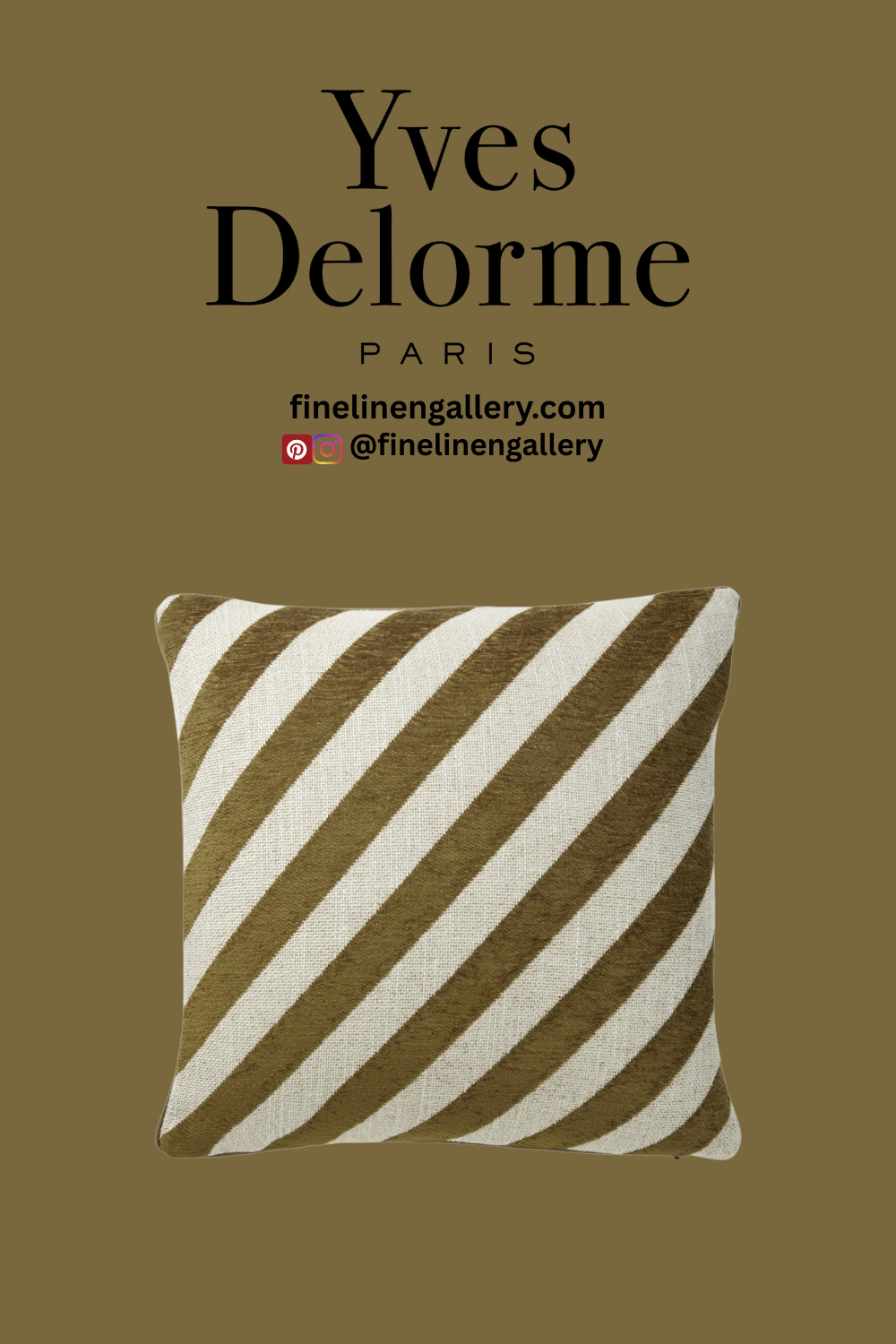 Woven in Italy, this decorative pillow highlights the refined expertise of Italian workshops, renowned for mastering complex weaves and achieving the perfect balance of material and color, central to Yves Delorme’s aesthetic.