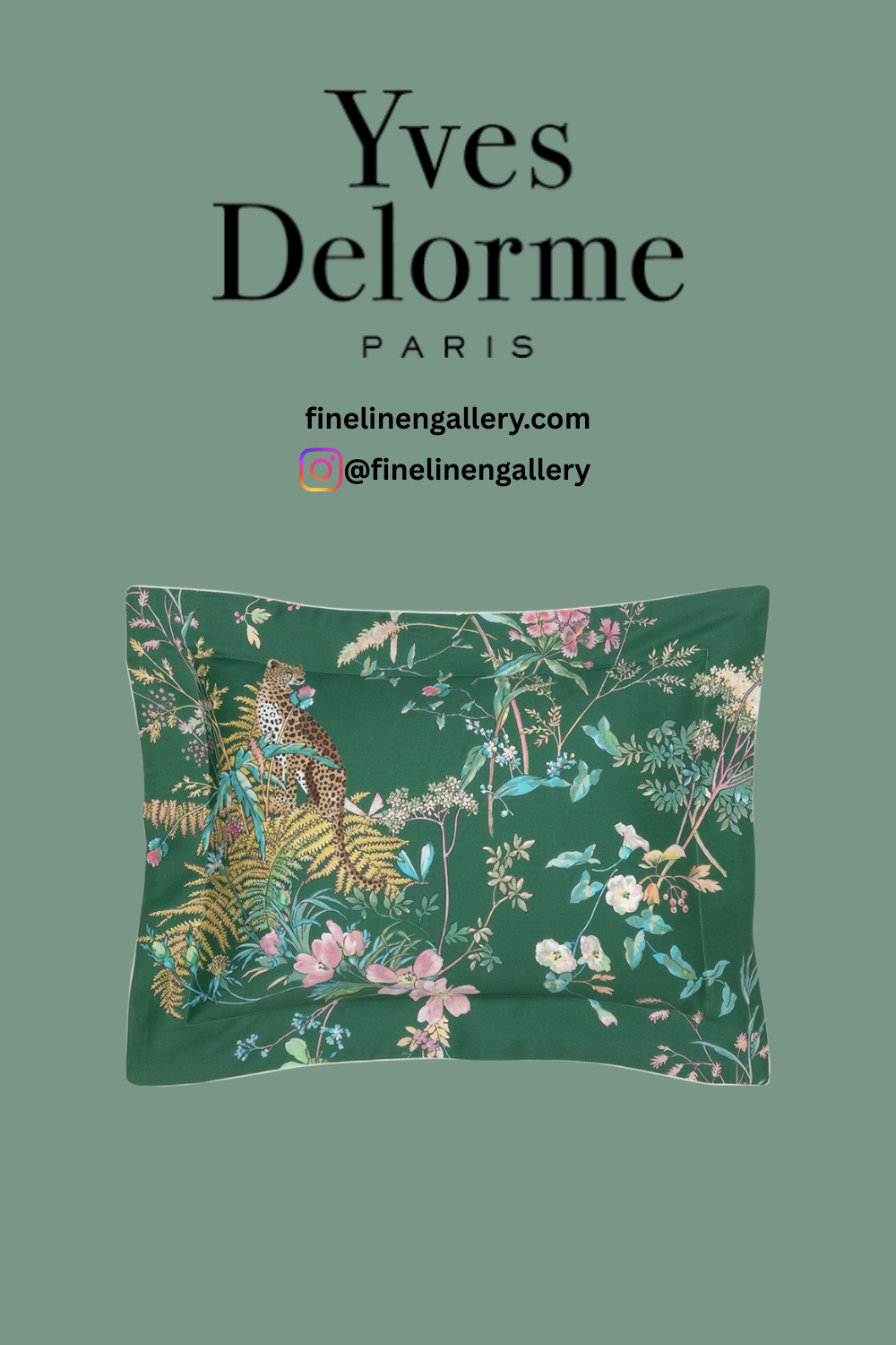 Between ethereal fauna and wild flora, the Contes bed linen set unveils a dreamlike, colorful design printed on luminous sateen, enveloping the bedroom in enchanting charm.