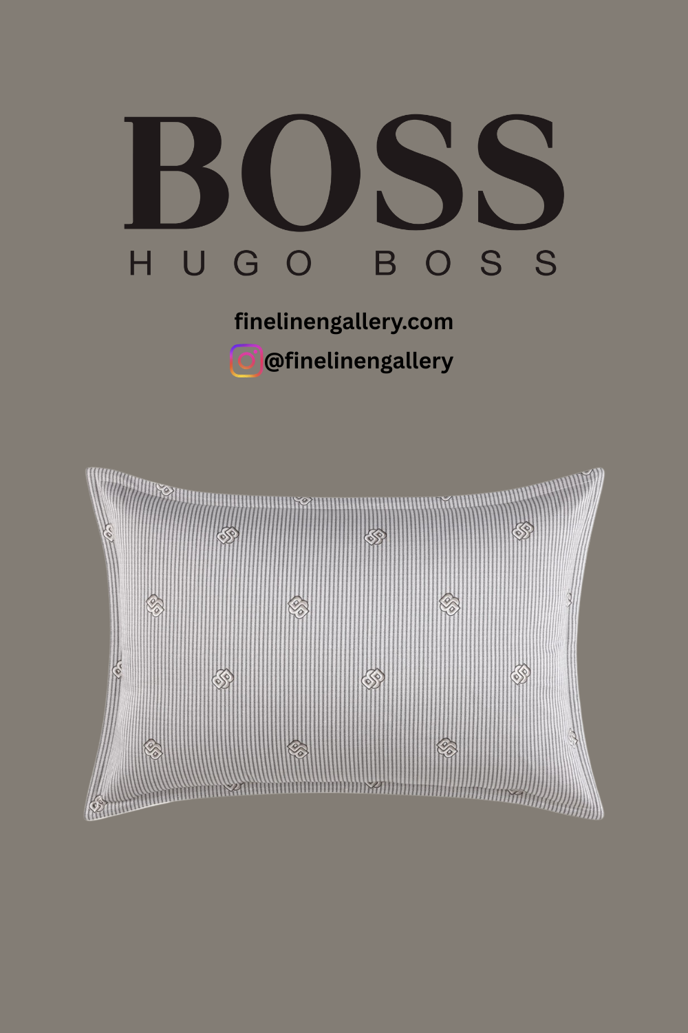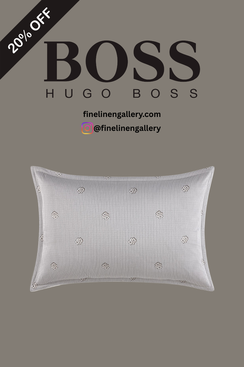 Celebrate BOSS Home's modern and playful branding with the Double B bed linen collection. The brand's background in menswear tailoring is recalled through shirt stripes, two different kinds in fact seen on different parts of the range, which are topped with two Bs layered on top of each other and printed with an embroidery-style effect, creating an optical illusion. Made with 100% cotton sateen, the design is not only stylish but also soft and comfortable to sleep in.