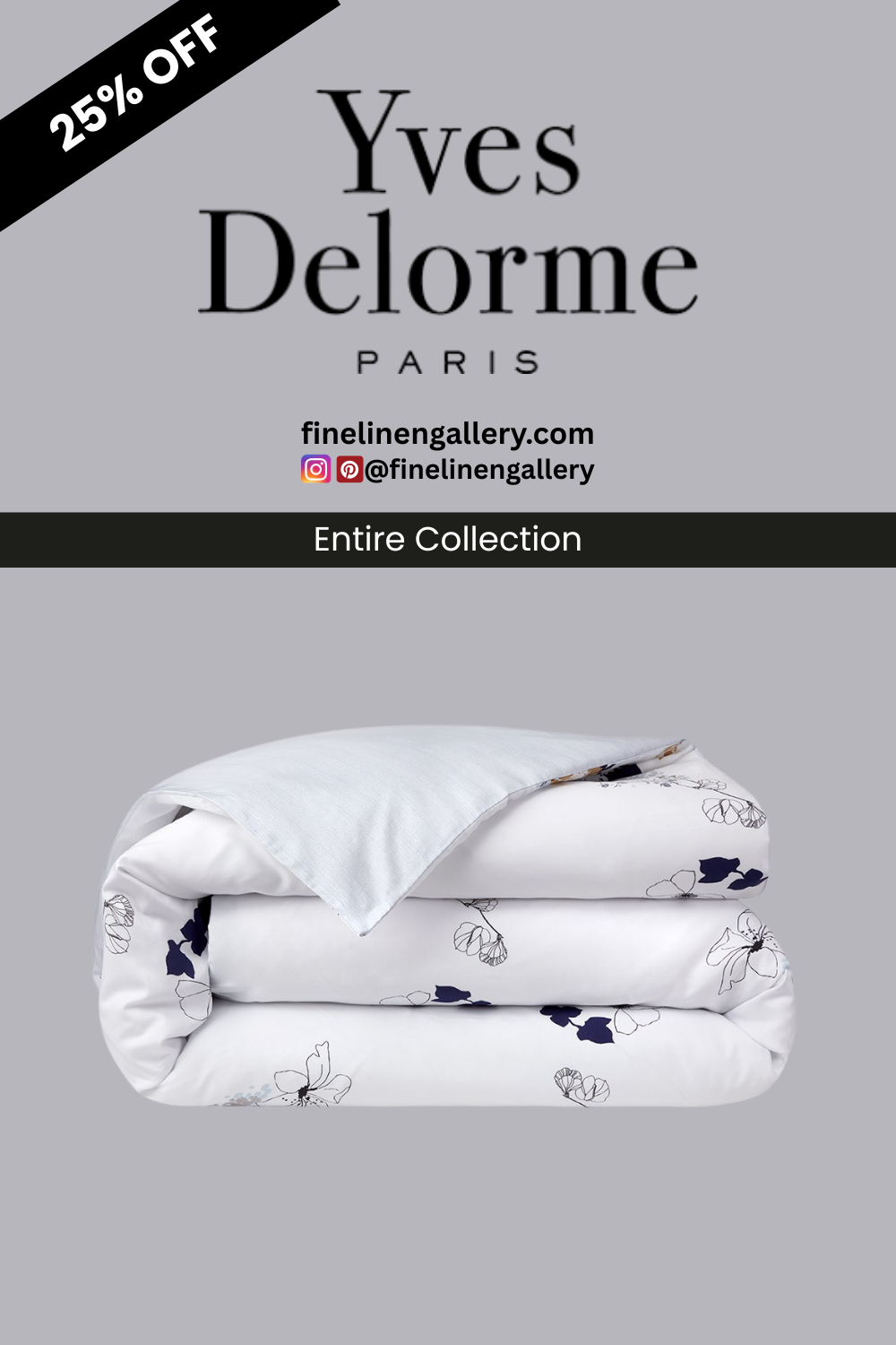On a moonlit evening, flowers appear as shadows on white sateen. Shades of midnight blue, sand, and sky intertwine to create a pattern that is both poetic and modern.