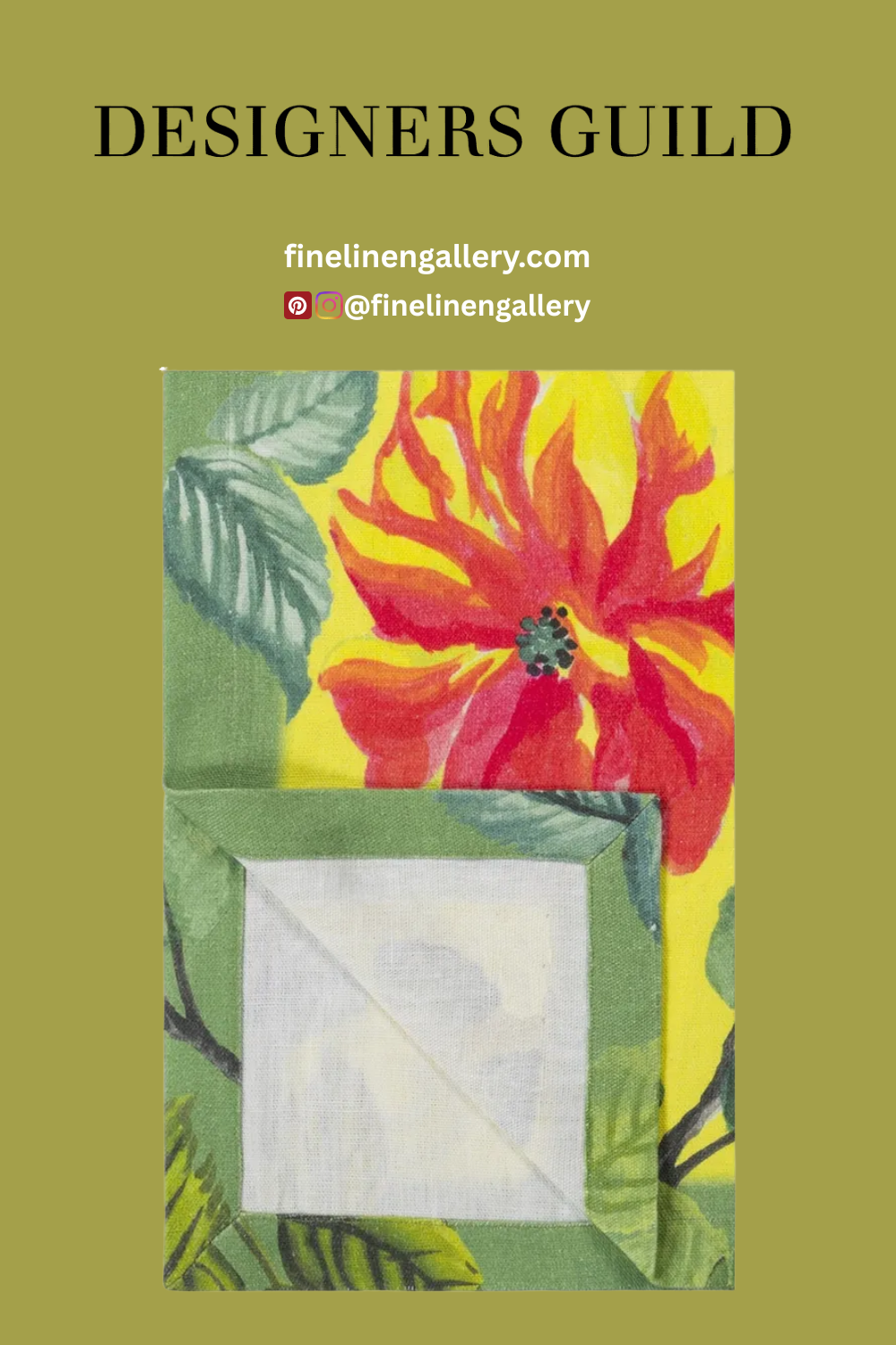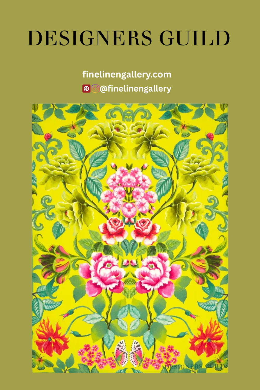 This vibrant interior throw will make a stunning statement in your interior setting. Set on a vivid yellow ground, colourful and painterly large scale flowers and foliage are set in mirrored form and adorned with decorative butterflies. This luxurious floral interior throw is digitally printed onto luxurious, heavyweight pure tumbled linen and finished with a hemmed edge.