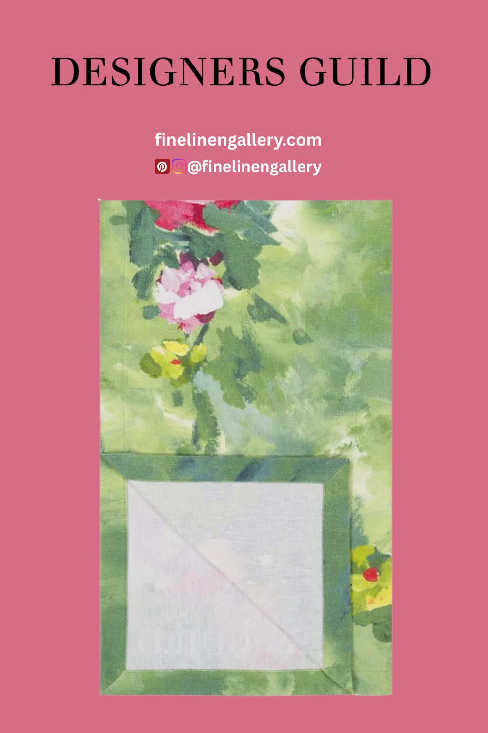 Striking garlands of painterly blooms in vibrant pinks and yellow are set on an expressive bed of green shades. This statement floral interior throw is digitally printed onto luxurious, heavyweight pure tumbled linen and finished with a hemmed edge.