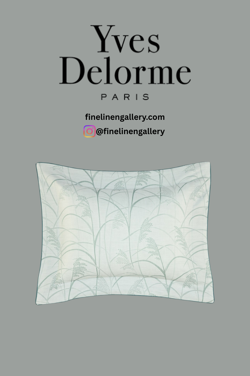 Between architectural lines and botanical softness, the Graminée bed linen set draws inspiration from Art Deco to sketch a luminous landscape, where the geometry of grasses is subtly woven into a serene, contemporary pattern.