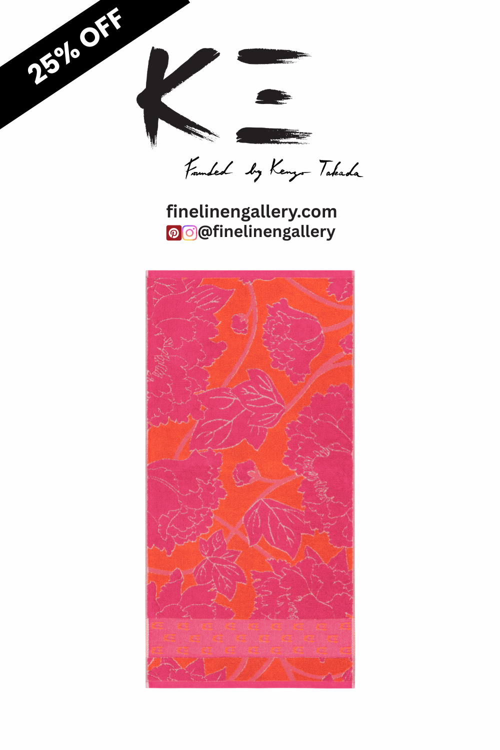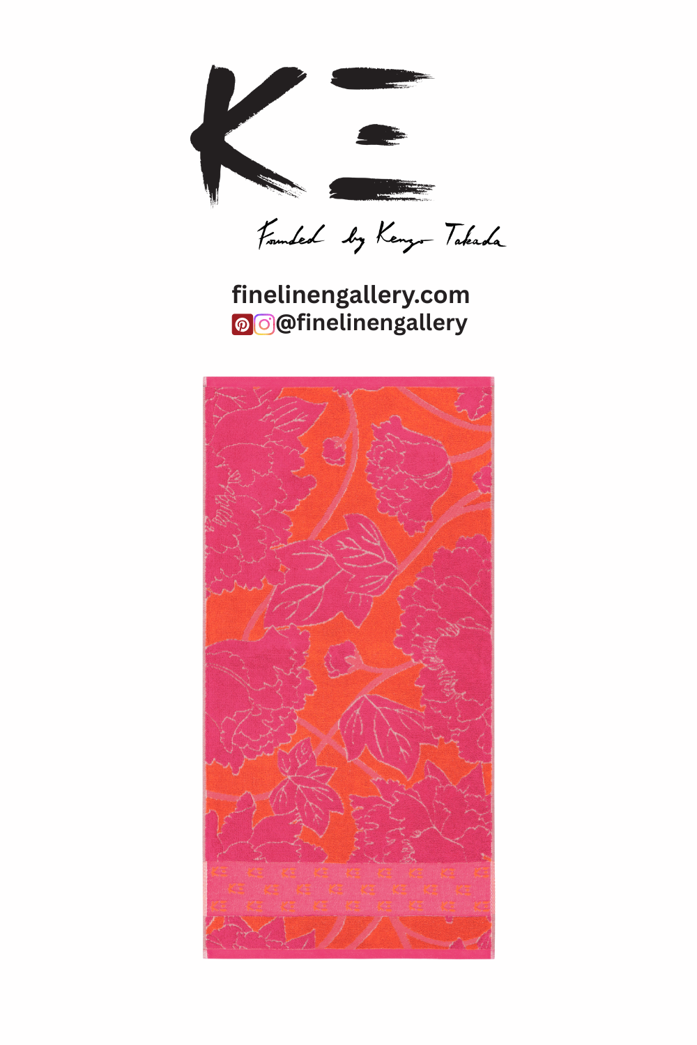 Reversible pink and orange Peonia bath towels, K3 design by Kenzo Takada