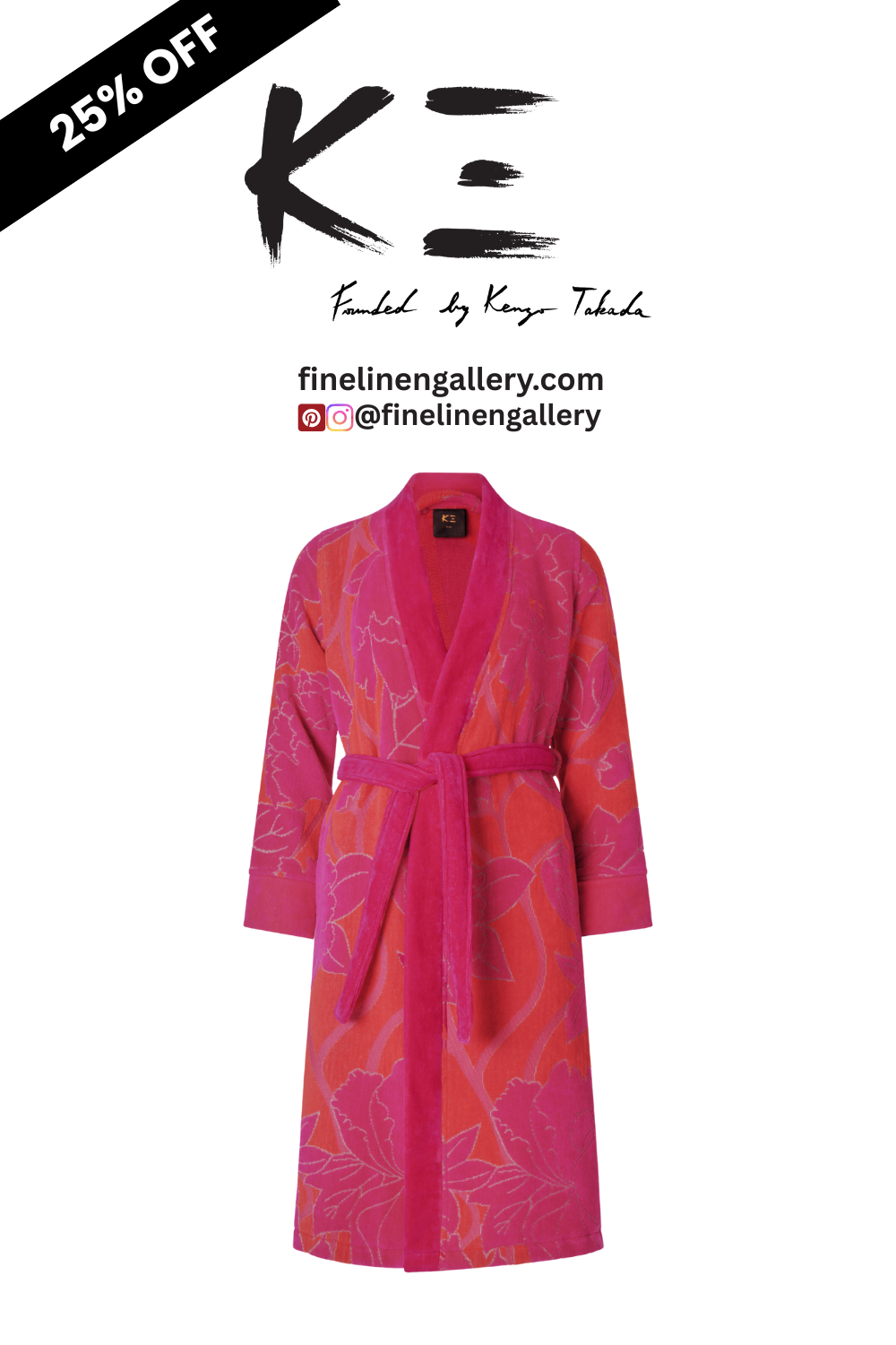 Pink and orange Peonia terry bathrobe, K3 design by Kenzo Takada