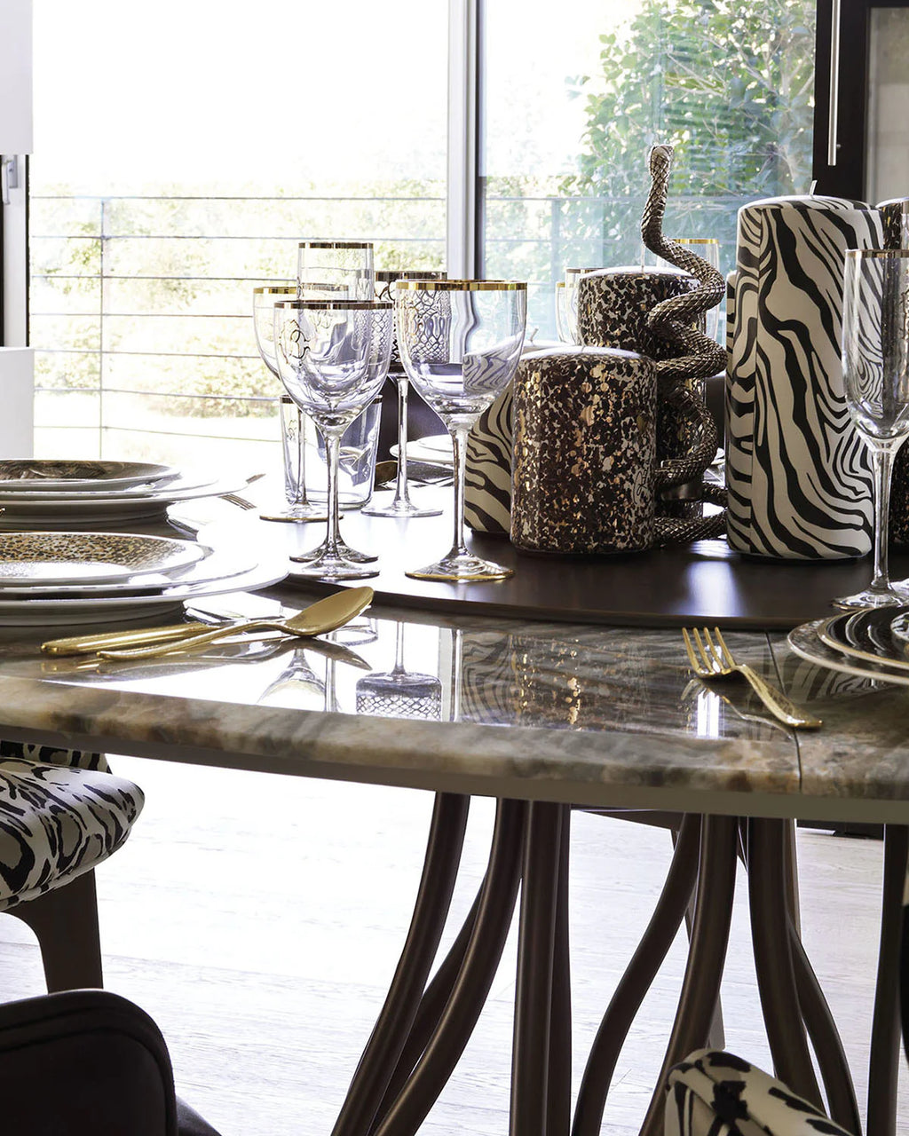 The Roberto Cavalli High Vase ZEBRAGE reflects the Zebrage collection, confirming the Maison’s passion for the bold animal motifs that made it iconic. The essential black-and-white zebra pattern evokes a journey to Africa, bringing the disruptive sensuality that defines Roberto Cavalli’s world-renowned style.