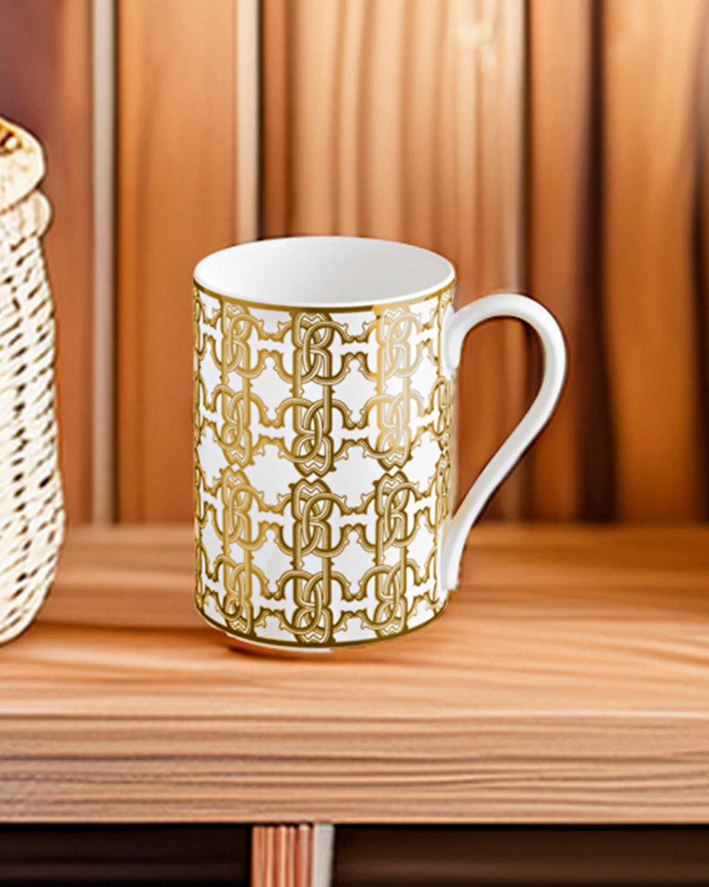 The Roberto Cavalli Home Mug Cup MONOGRAM in Luxury Box embodies the refined elegance of the Monogram Gold collection, extending the brand’s distinctive flair from haute couture to fine tableware. Defined by the simplicity of the iconic two-letter logo, it offers a sophisticated expression of luxury rich in allure and enigma.