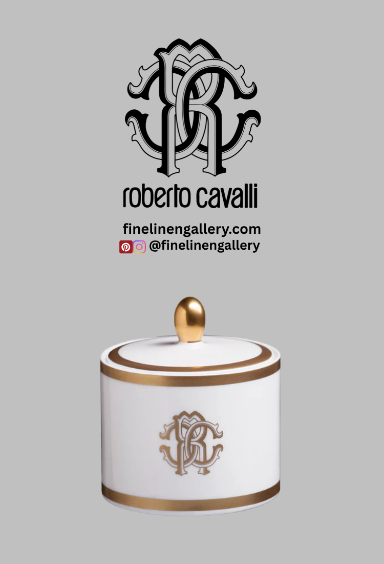 The Roberto Cavalli Home Sugar Pot SILK – Gold embodies the quiet sophistication of the Silk Gold collection. Its monochrome, austere façade is refined with a delicate golden thread, leaving room for imagination while the Roberto Cavalli logo affirms luxury made in Italy.