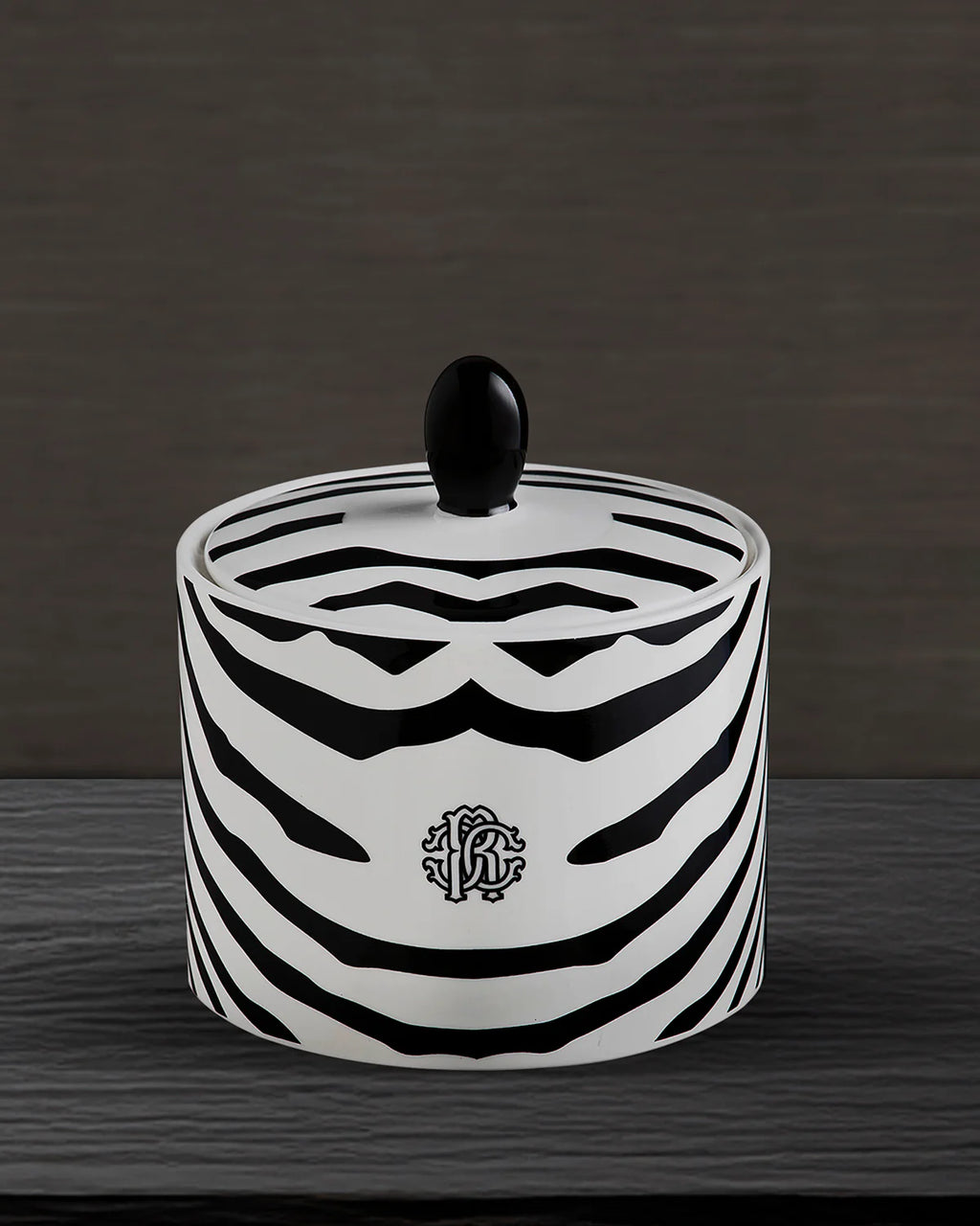 The Roberto Cavalli Home Sugar Pot ZEBRAGE is inspired by the Zebrage collection, highlighting the brand’s passion for bold animal motifs that made it iconic. The essential black-and-white zebra pattern evokes a journey to Africa, infusing the table with disruptive sensuality and refined elegance.