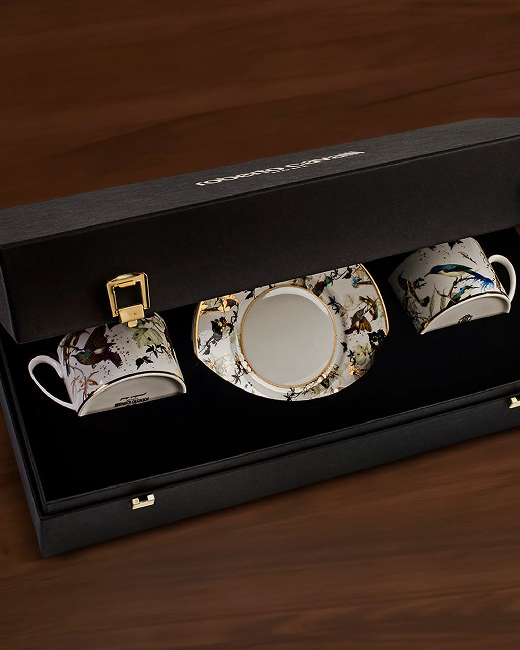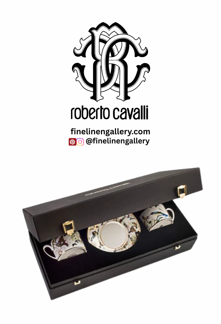 Roberto Cavalli Home Tea Cup & Saucer GARDEN’S BIRDS Set of 2 in Luxury Box celebrates the colourful joy of a garden filled with singing birds. Bright, fresh tones enhanced with gold accents create a sparkling design, adding a touch of mysterious and exotic charm to the tea table.