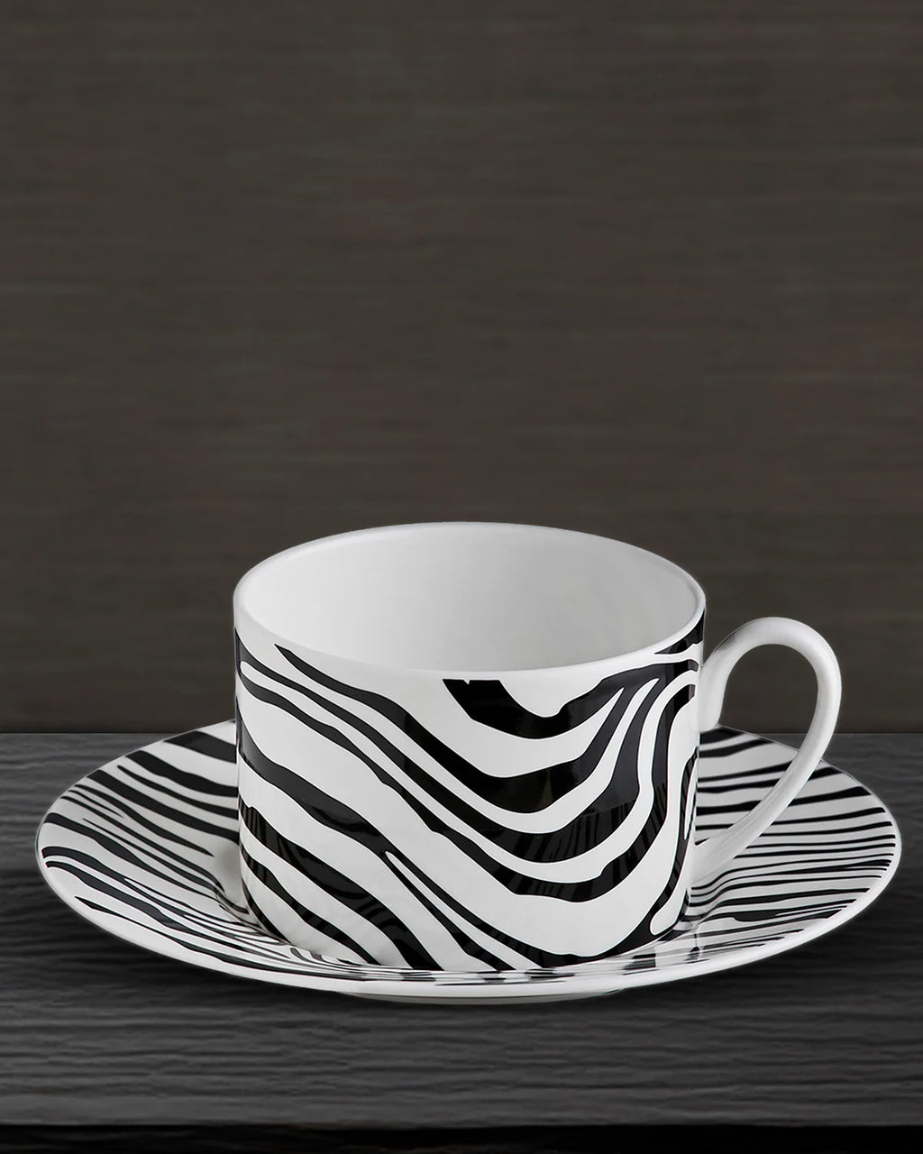 The Roberto Cavalli Home Tea Cup & Saucer ZEBRAGE Set of 2 in Luxury Box reflects the Zebrage collection, confirming the brand’s passion for bold animal motifs that made it iconic. The essential black-and-white zebra pattern evokes a journey to Africa, bringing the disruptive sensuality that defines Roberto Cavalli’s world-renowned style.