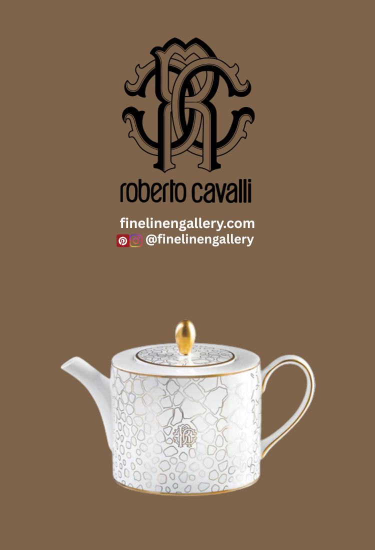 The exquisite Giraffe collection by Roberto Cavalli is crafted on pristine white bone china, featuring an elegant gold and platinum outline design. A gold rim and the meticulously positioned Roberto Cavalli logo complete this sophisticated collection.