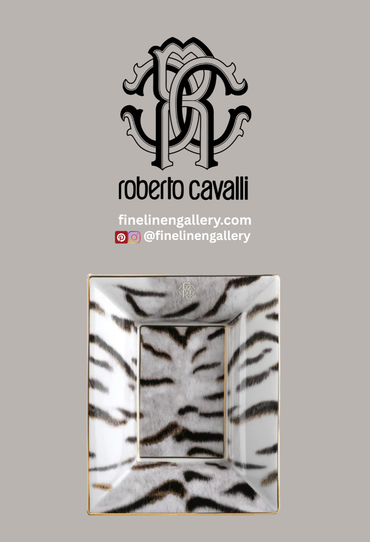 The Roberto Cavalli Home Tray TIGER Rectangular Large expresses the bold character of the Tiger collection, where Roberto Cavalli asserts his mastery of animalier textures that defined Italian fashion luxury. The expressive feline motif brings provocative femininity, grace, and passion to serving and décor.