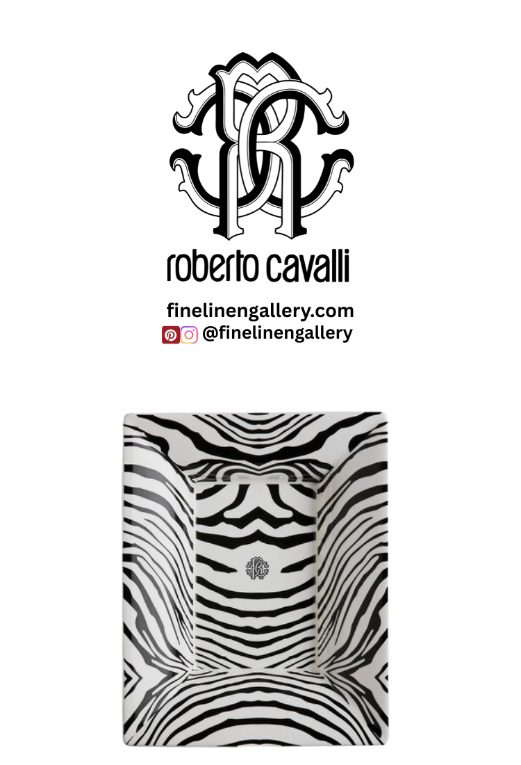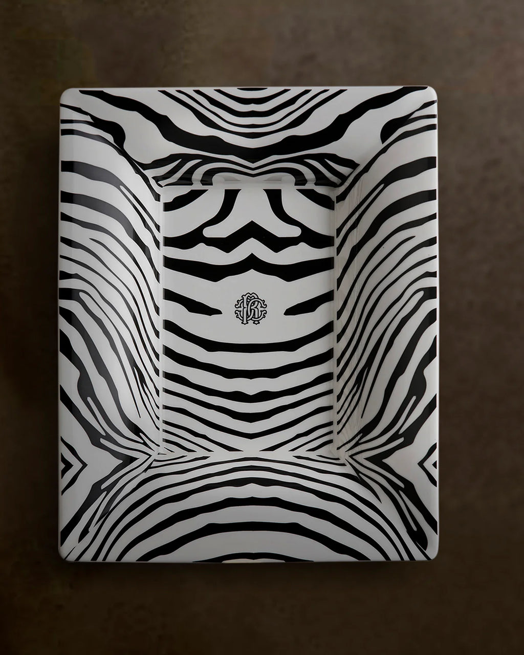 The Roberto Cavalli Home Tray ZEBRAGE Rectangular Large belongs to the Zebrage collection, confirming the Maison’s passion for bold animal motifs that made it iconic. The essential black-and-white zebra pattern evokes a journey to Africa, bringing the disruptive sensuality that defines Roberto Cavalli’s world-renowned style