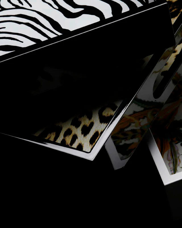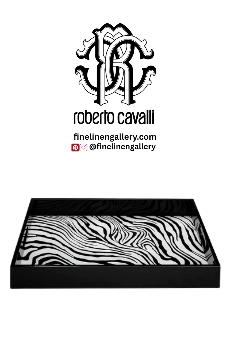 Roberto Cavalli Home Tray ZEBRAGE Rectangular Small showcases the bold spirit of the Zebrage collection. The striking black-and-white zebra pattern evokes Africa’s wild allure, bringing the signature disruptive sensuality of Roberto Cavalli luxury to the table.