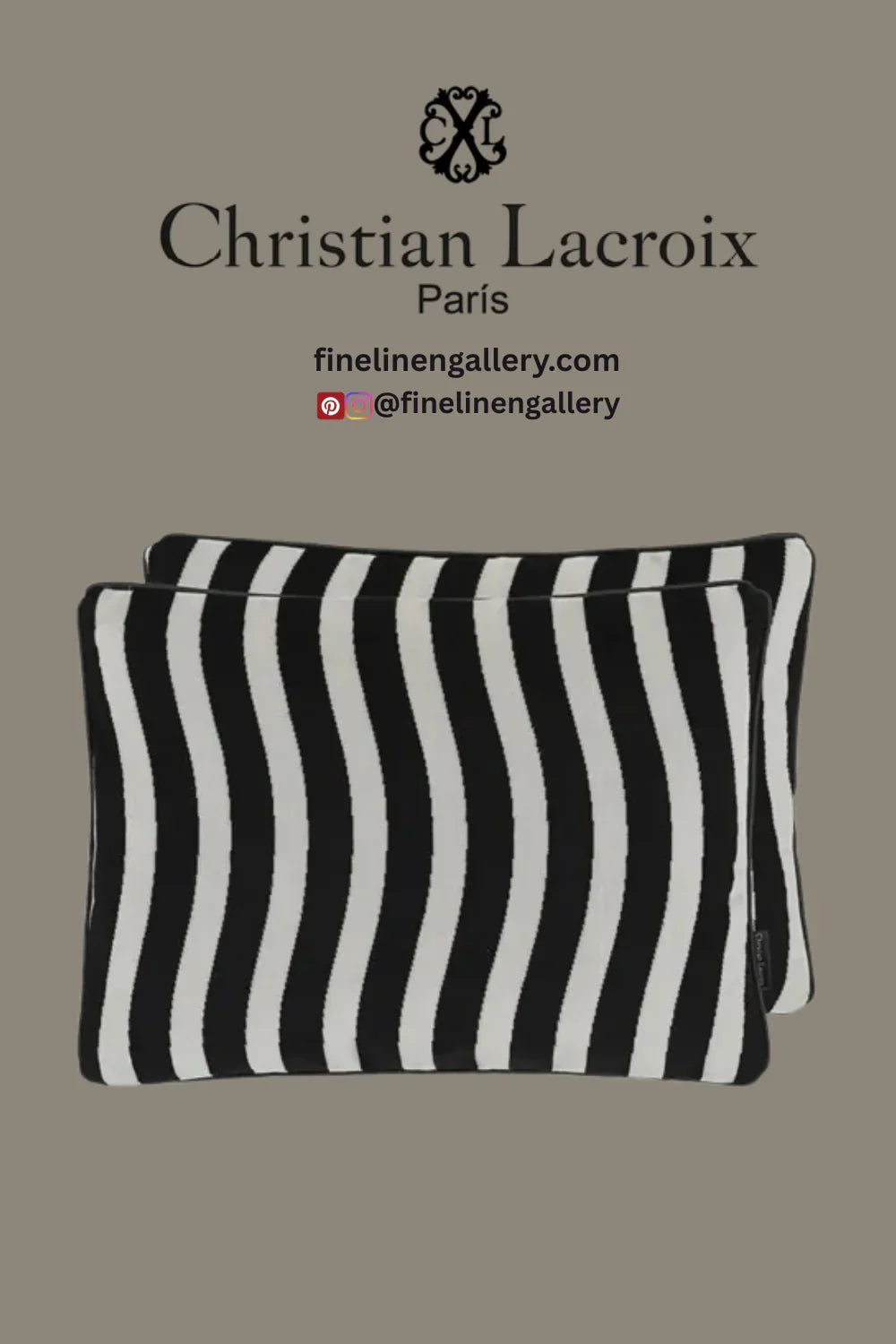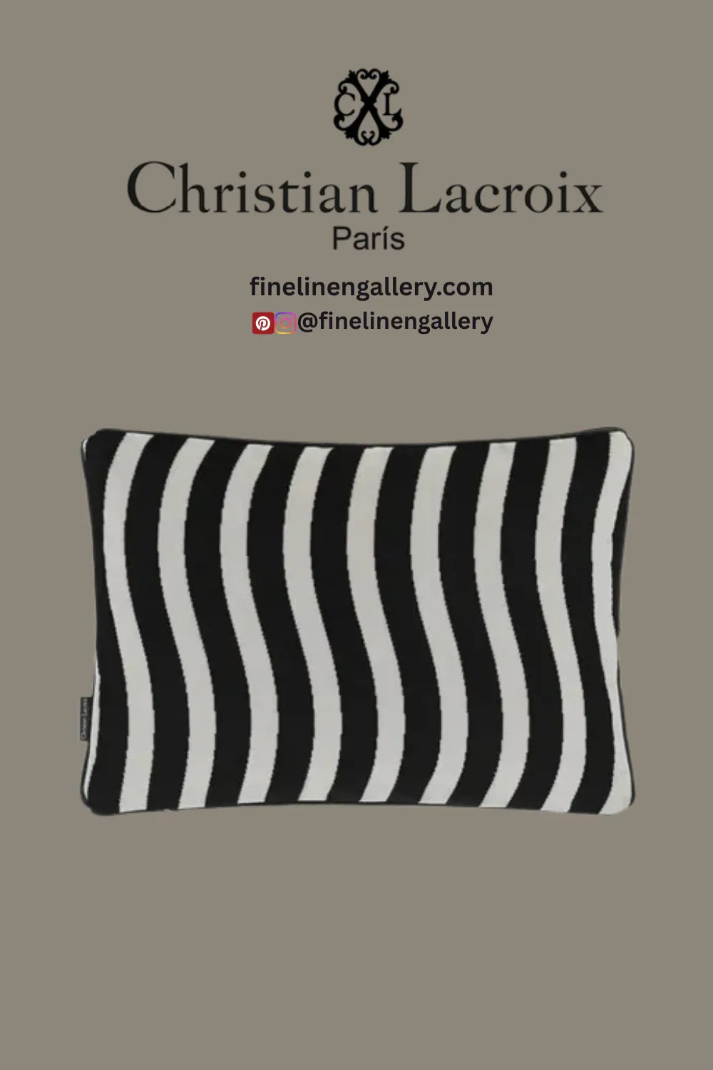 A graphic black and white wavy stripe expertly woven in sumptuous and luxurious velvet is used for this divine decorative pillow by Christian Lacroix Maison. Trimmed with an elegant black satin piping on all sides.