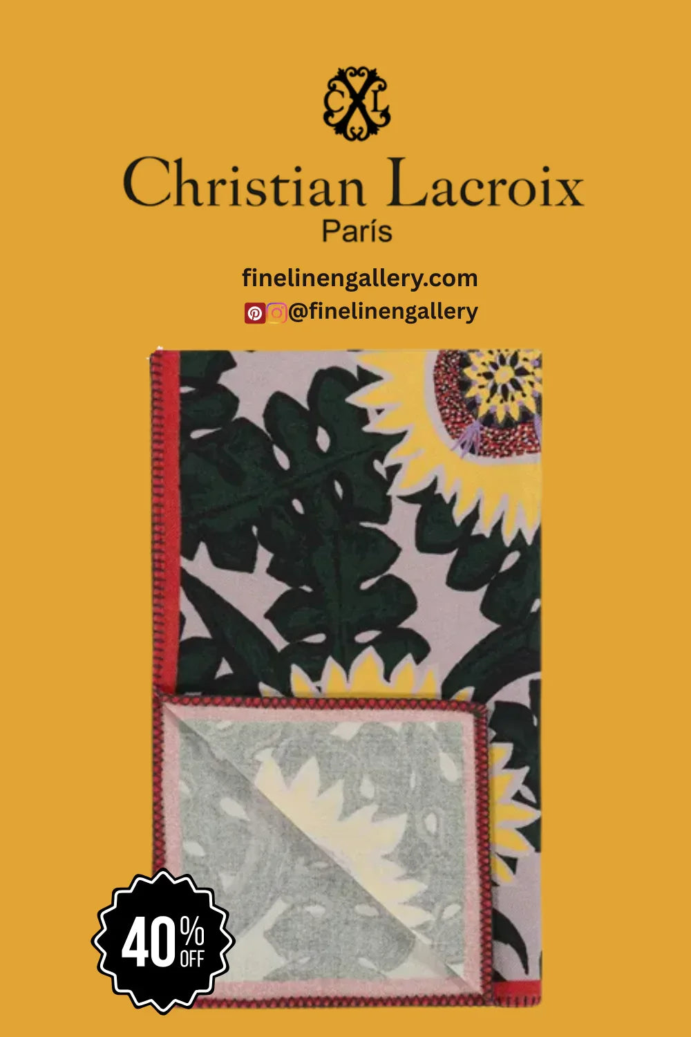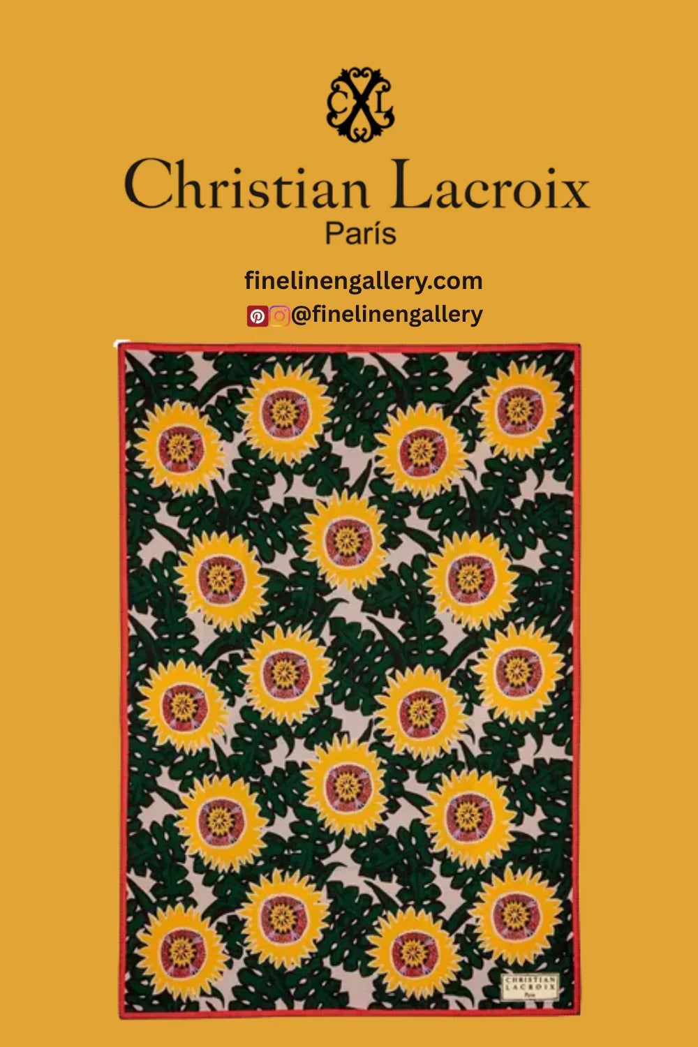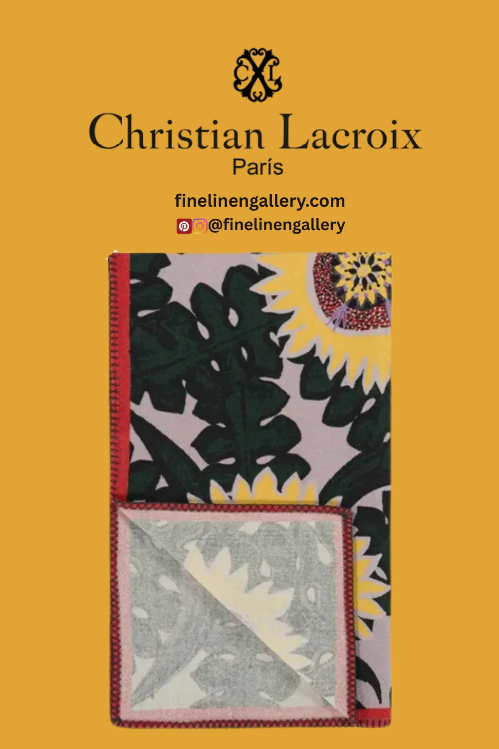 The sunflower - 'Soleils', as the French call these mythical flowers, were a focal point for Van Gogh and the work he did whilst in Arles with sumptuous bunches of sunflowers placed in the room when his friend Paul Gaugin came to visit. This ode to friendship depicts an abundance of vibrant graphic sunflower motifs in this contemporary throw by Christian Lacroix Maison. This designer floral interior throw is digitally printed onto luxurious pure Merino wool and finished with a blanket stitch detail on sides.