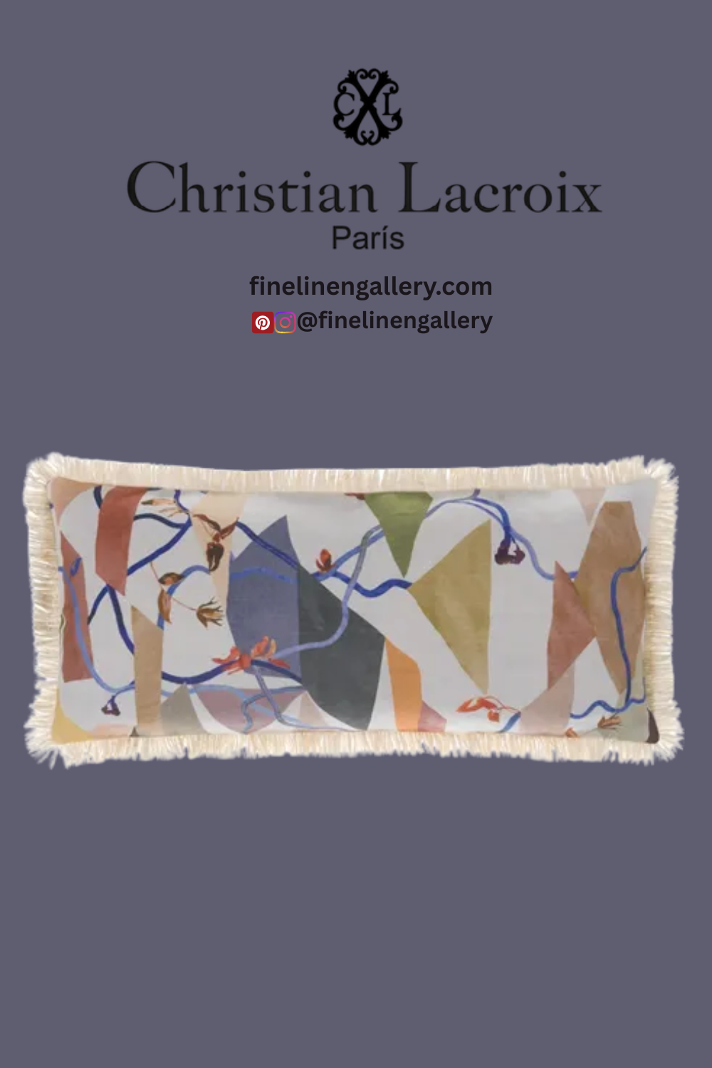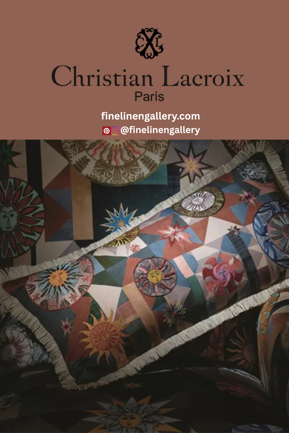 A delightful patchwork patterned decorative pillow by Christian Lacroix Maison, inspired by the Provençal style quilted fabric known as boutis, adorned with a multitude of Provençal suns in rich shades of terracotta. This rectangular designer decorative pillow is digitally printed and embroidered onto cotton sateen. Digitally printed linen reverse and finished on all sides with a natural raffia trimming.
