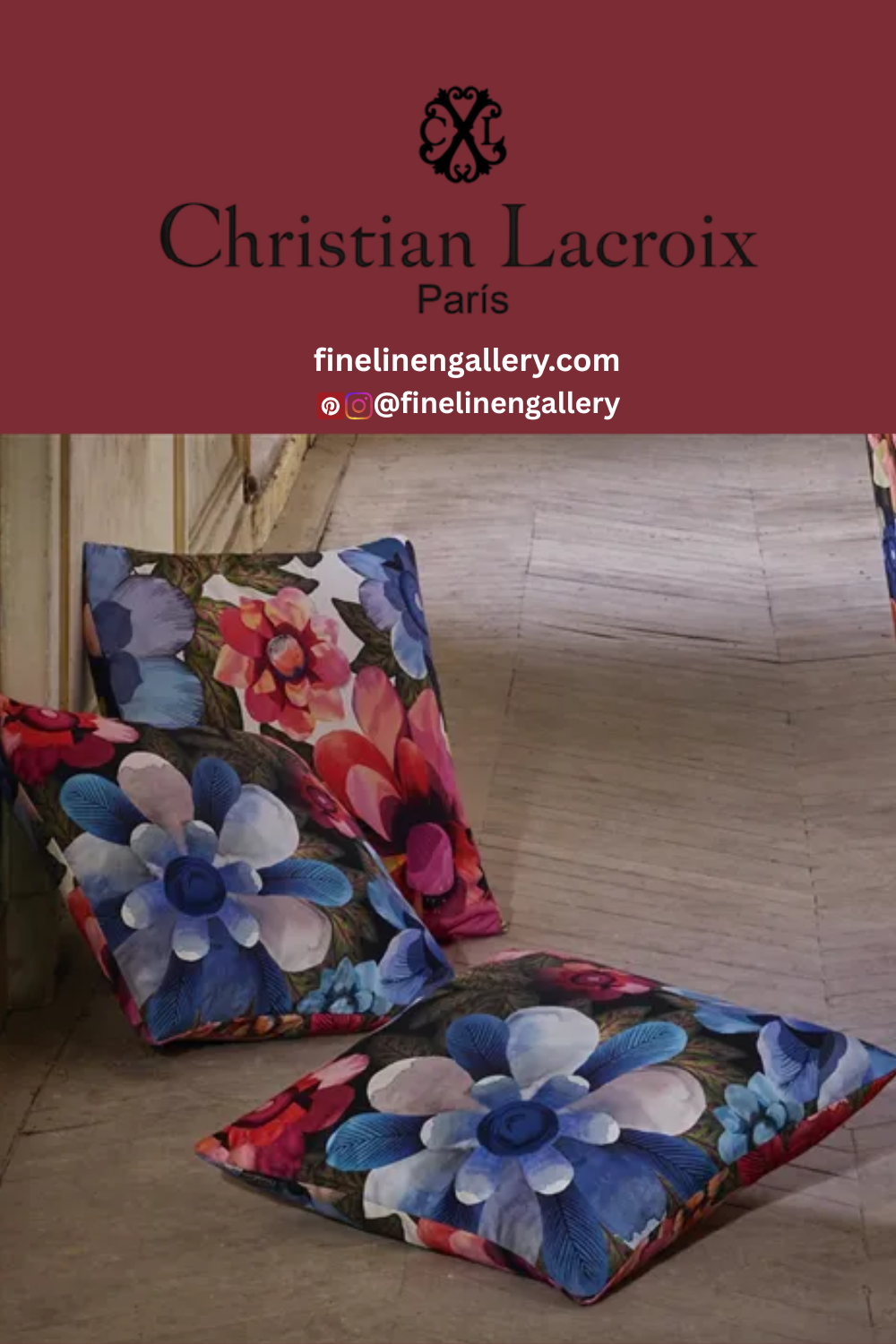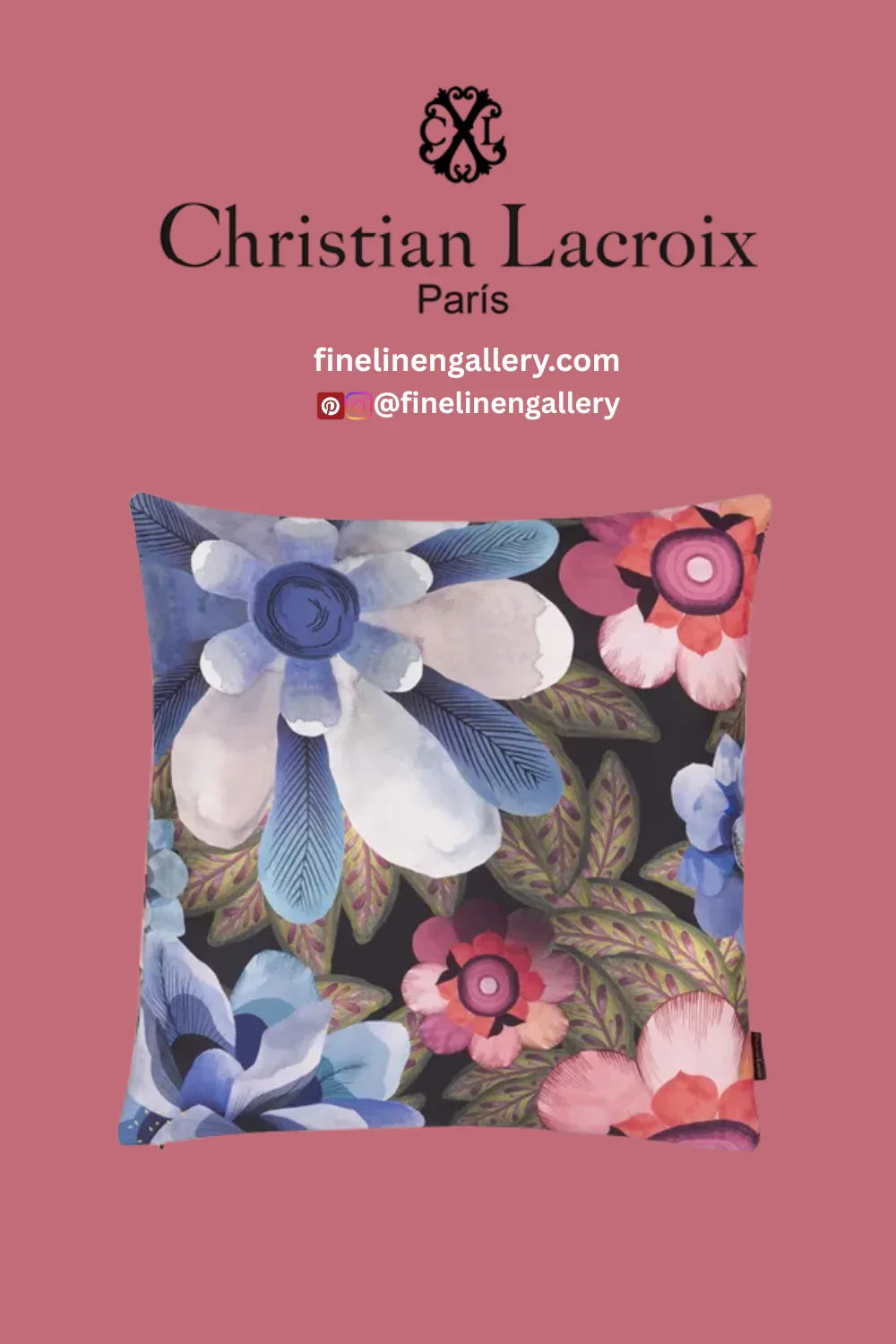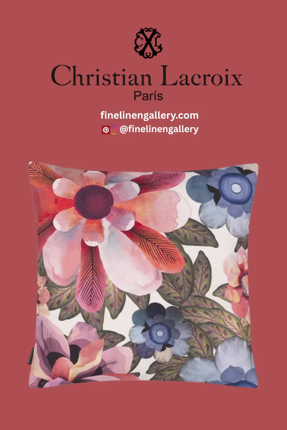 Densely clustered poppies and cosmos flowers are rendered in dramatic varying scales in this opulent decorative pillow by Christian Lacroix Maison. This stylish floral designer pillow is digitally printed onto a textural canvas with a cotton satin reverse.